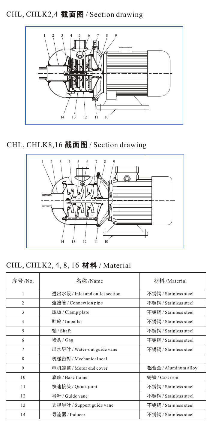 CHL,CHLK輕型不銹鋼多級離心泵(結構圖)