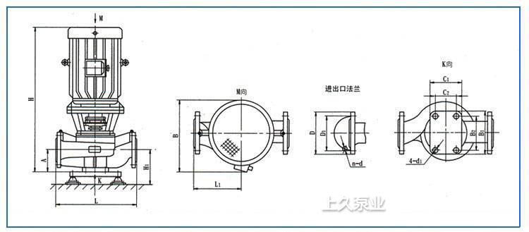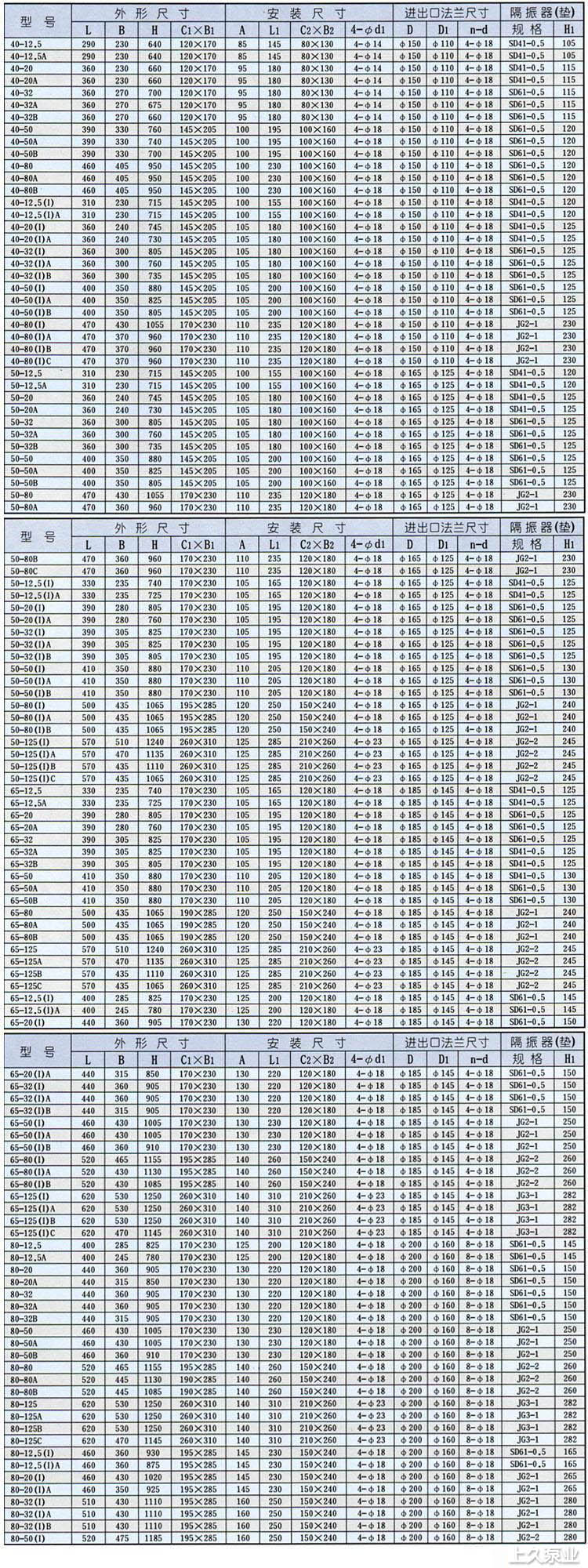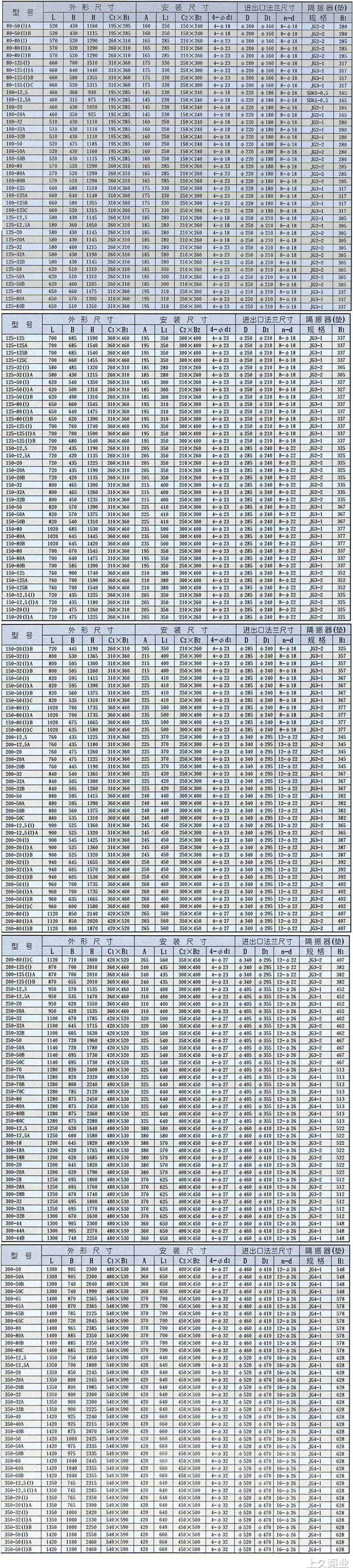ISGB型便拆立式管道離心泵安裝尺寸圖: ISGB型便拆立式管道離心泵安裝尺寸表: