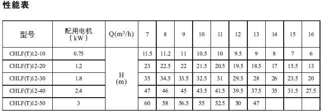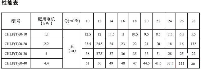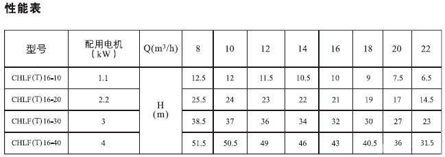 CHLF,CHLF(T)輕型段式多級(jí)離心泵(性能參數(shù))