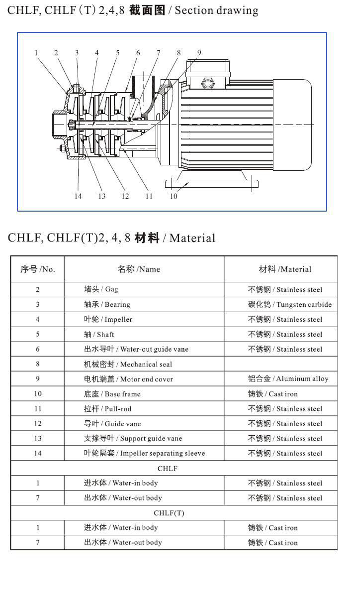 CHLF,CHLF(T)輕型段式多級離心泵(結構圖)