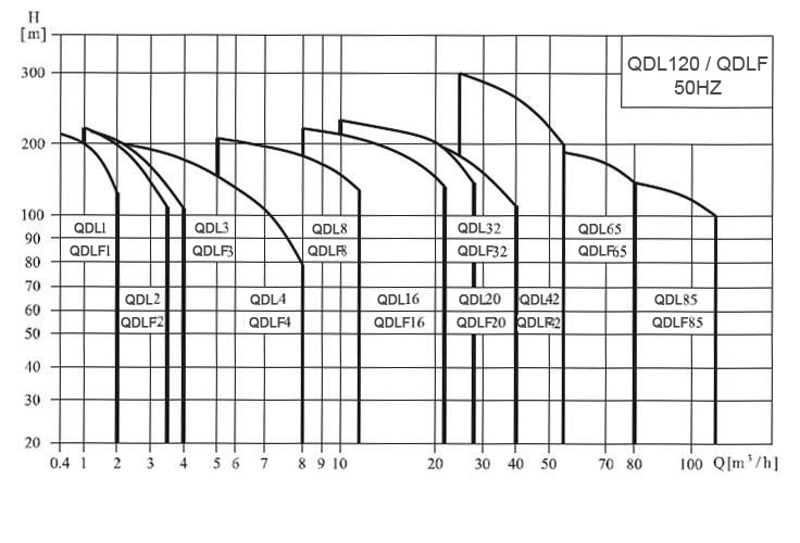 QDLF型輕型不銹鋼立式多級管道離心泵性能圖譜: