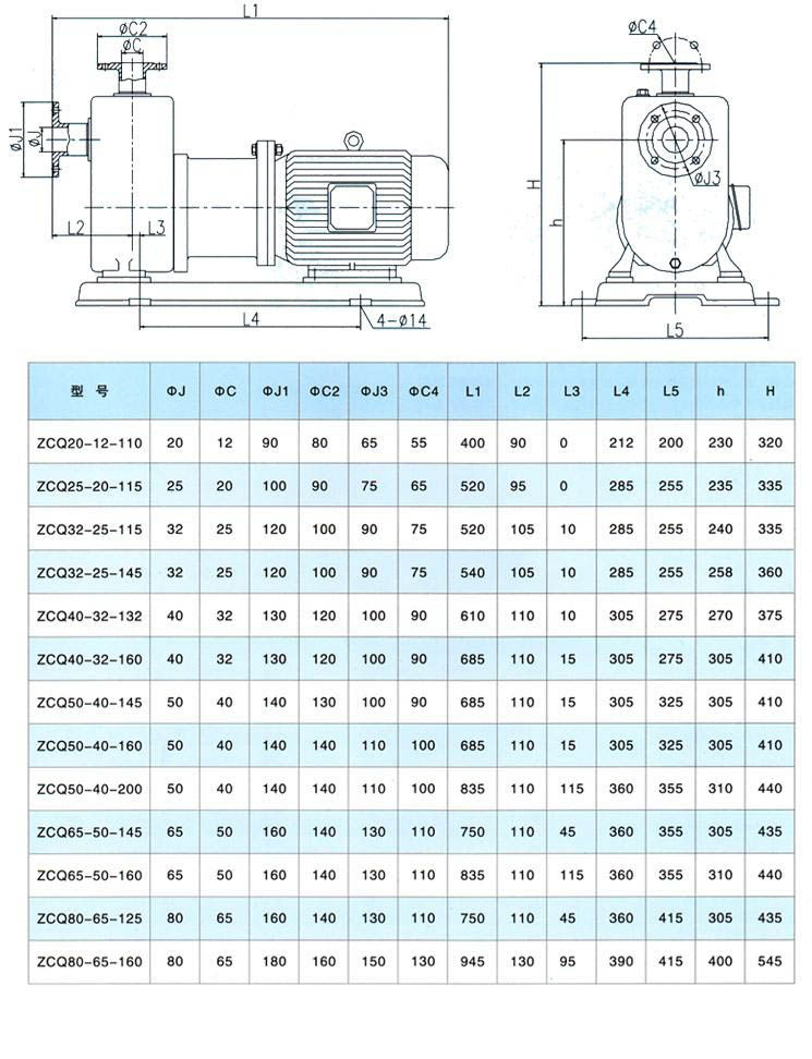 二、ZCQ型自吸式磁力泵(安裝尺寸)